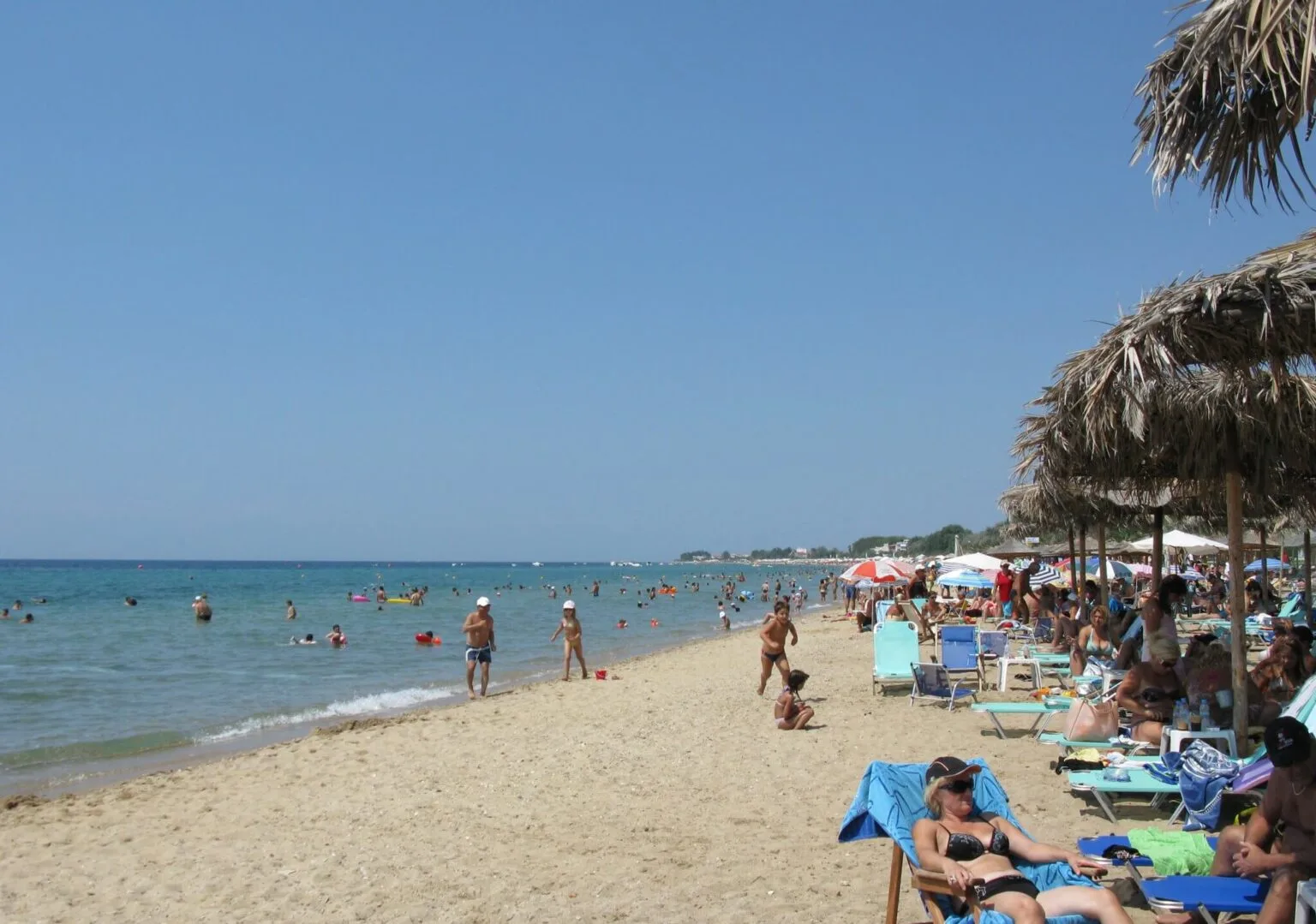 The beach is organized with lifeguards on duty, sunbeds for rent, and water sports facilities. Families appreciate the shallow waters and the safe environment for children.