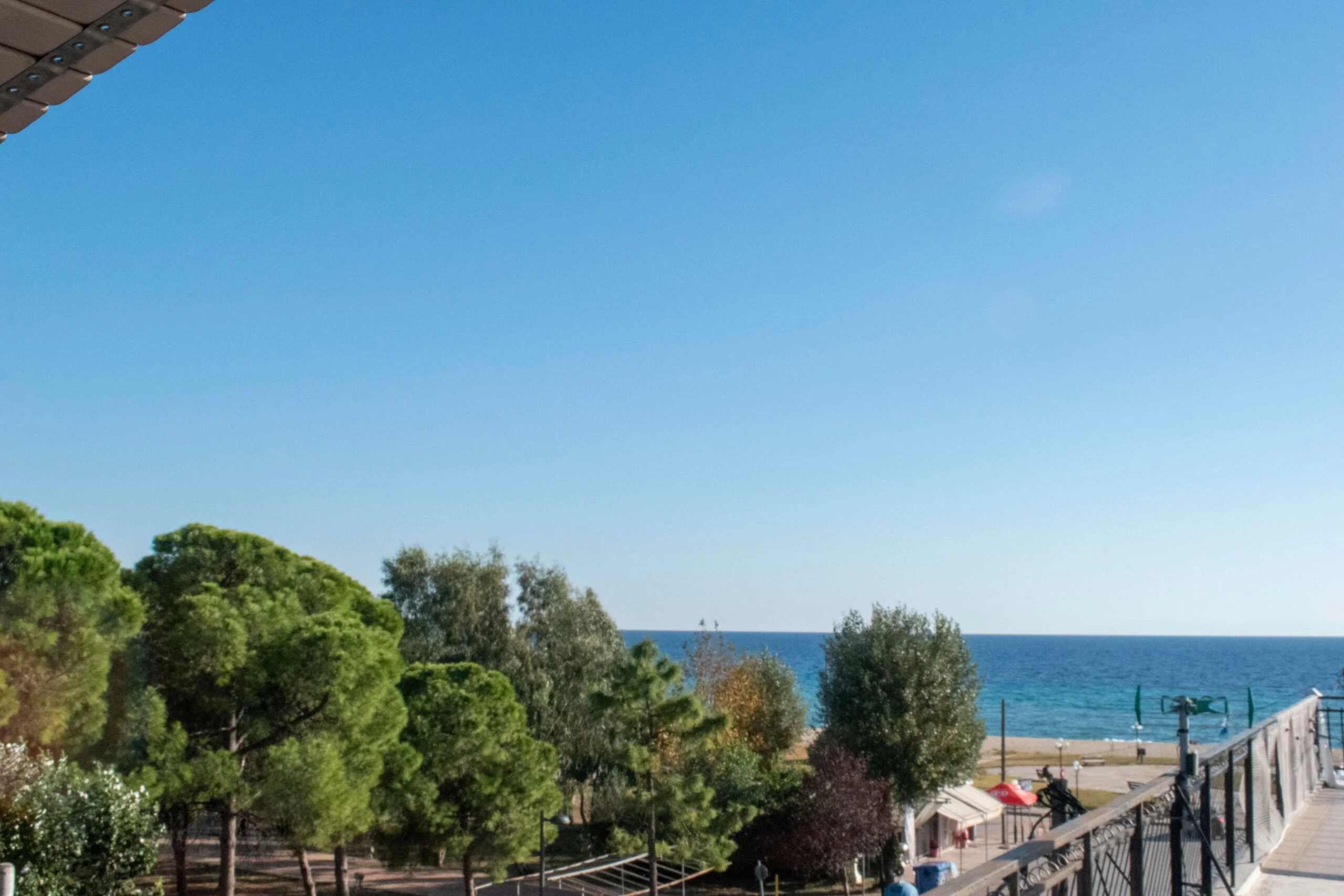 Η παραλία μας, η οποία είναι αμμώδης με έκταση περίπου ένα χιλιόμετρο, εδώ και χρόνια αποσπά τη γαλάζια σημαία. Ακριβώς απέναντι από το κτίριο υπάρχει πάρκο καθώς και υπαίθρια ανοιχτή αγορά για την προμήθεια φρούτων και λαχανικών μέχρι αργά τη νύχτα. Δωρεάν πάρκινγκ υπάρχει μπροστά στο δρόμο, ενώ το μεγάλο ελεύθερο πάρκινγκ του δήμου βρίσκεται σε απόσταση δέκα μέτρων. Σε απόσταση 150 μέτρων θα βρείτε super markets, αρτοποιείο, κρεοπωλείο, ταβέρνες, café bars, φαρμακείο, ιατρείο.